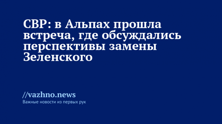 В Альпах прошла встреча, посвященная обсуждению перспектив замены президента Украины Владимира Зеленского. Об этом стало известно 29 июля от Службы внешней разведки (СВР) РФ.
