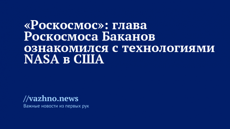 Генеральный директор «Роскосмоса» Дмитрий Баканов начал свое рабочее посещение США с визита в Космический центр им. Джонсона в Хьюстоне, штат Техас, чтобы изучить технологии NASA. Об этом 29 июля сообщила пресс-служба «Роскосмоса».