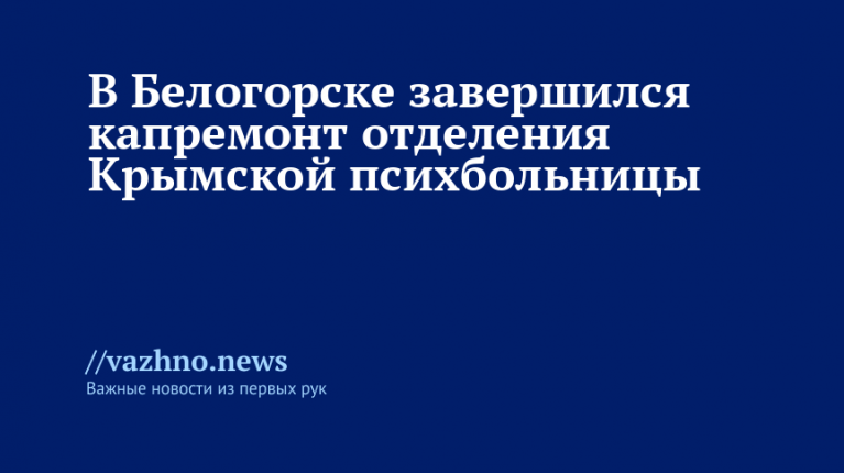 В Белогорске успешно завершен капитальный ремонт в отделении первой Крымской республиканской клинической психиатрической больницы имени Н.И. Балабана. Об этом рассказала пресс-служба местного правительства.