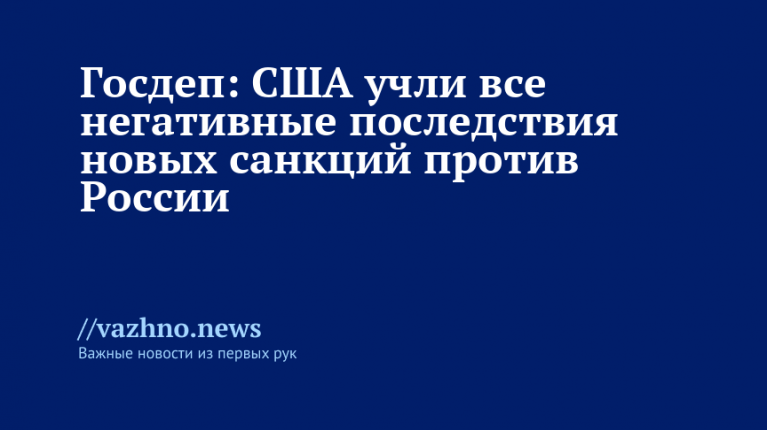 США приняли во внимание все вероятные негативные последствия введения вторичных санкций против России и её торговых партнеров. Об этом 29 июля сообщила на брифинге с журналистами официальный представитель Госдепартамента США Тэмми Брюс.