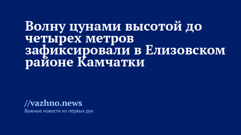 На мысе наблюдения метеостанции Водопадная в Елизовском районе Камчатки зафиксировали волну цунами высотой от трех до четырех метров. Министр по чрезвычайным ситуациям региона Сергей Лебедев сообщил об этом 30 июля.