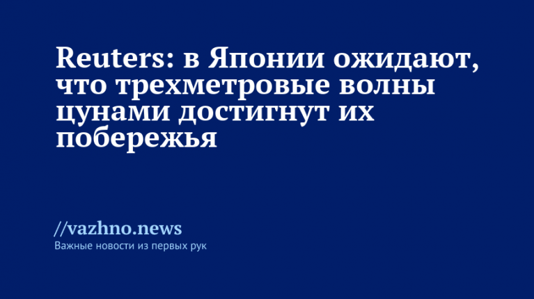 Как говорится в публикации, «Японское метеорологическое агентство подняло уровень предупреждения, отметив, что ожидается, что волны цунами высотой до трех метров достигнут обширных прибрежных районов».