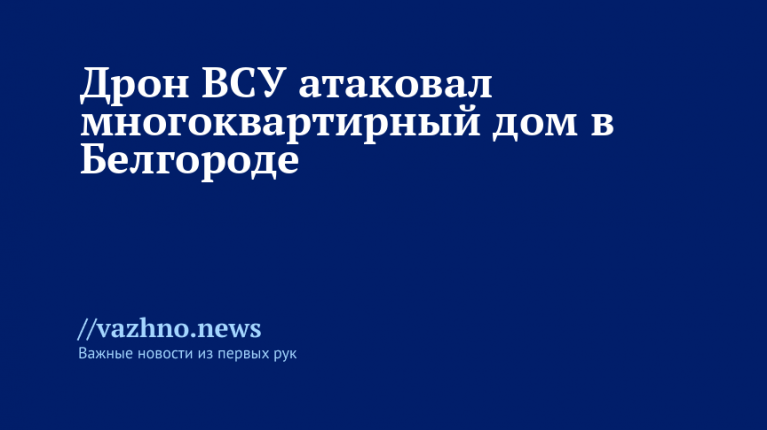 «В Белгороде беспилотник ВСУ атаковал многоквартирный дом. По предварительной информации, пострадавших нет», — написал Гладков в своем Telegram-канале.