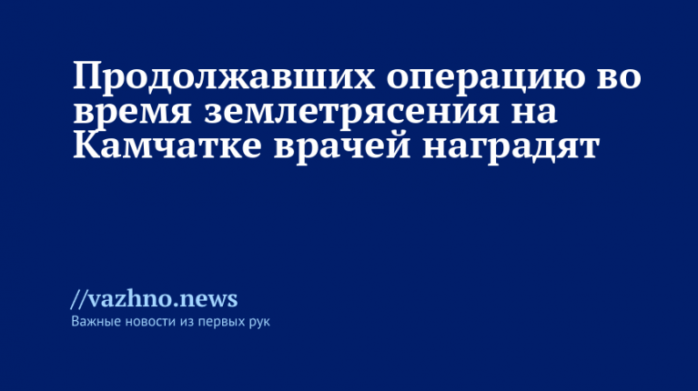 Медики онкологического диспансера, которые не остановили операцию во время землетрясения на Камчатке, будут награждены. Об этом заявил 30 июля губернатор Камчатского края Владимир Солодов на своем канале в Telegram.