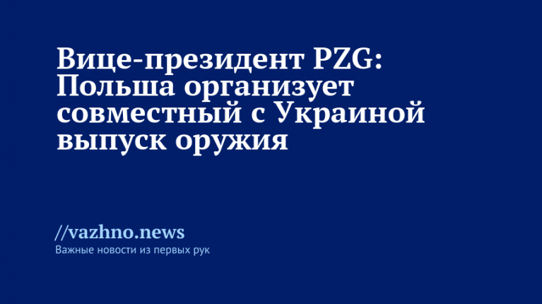 Совместное производство вооружений в Польше будет организовано польским государственным оборонным концерном PZG при сотрудничестве с Украиной. Об этом сообщил 29 июля вице-президент PZG Ян Грабовский.