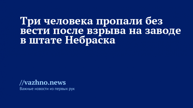 Трое человек числятся пропавшими после взрыва на заводе Horizon Biofuels, который расположен в Южном Фремонте, штат Небраска, США. Об этом 30 июля сообщил телеканал ABC News, опираясь на сведения от местных властей.