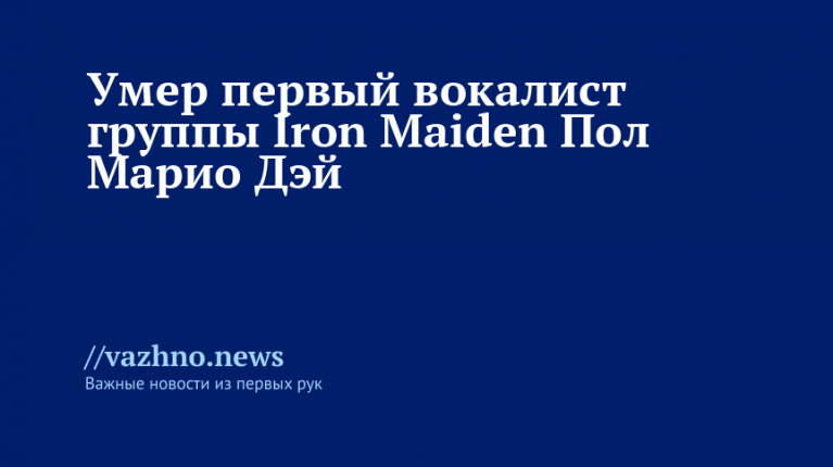 Пол Марио Дэй, первый вокалист легендарной британской хэви-метал группы Iron Maiden, скончался в возрасте 69 лет. Об этом 30 июля сообщила газета Daily Mail, ссылаясь на заявление группы More, частью которой он стал после ухода из Iron Maiden.