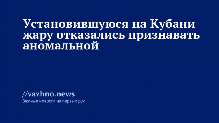 В Гидрометцентре России подтвердили, что текущие значения температуры воздуха в Краснодарском крае соответствуют климатической норме. Ведомство отмечает, что вторая половина июля и начало августа традиционно считаются самым жарким временем для данного региона.