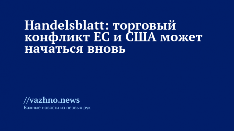 По информации издания, Евросоюз отверг многочисленные положения «информационного бюллетеня» по тарифам и инвестициям, который был обнародован Белым домом 28 июля. Handelsblatt также приводит слова бывшего еврокомиссара по внутреннему рынку ЕС Тьерри Бретона, который отметил, что на торговые отношения между США и ЕС нависла угроза «новой фазы нестабильности».
