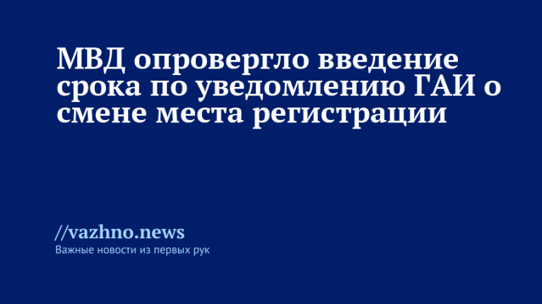 Распространяемое в интернете сообщение о 10-дневном сроке, который якобы обязаны соблюдать автовладельцы для уведомления Госавтоинспекции о смене места постоянной регистрации, не соответствует реальности. Официальный представитель МВД России Ирина Волк сообщила об этом 30 июля через свой Telegram-канал.