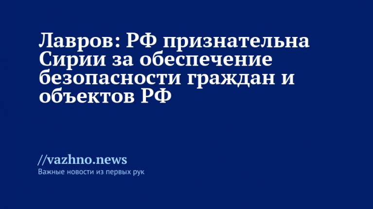 Российская сторона выражает благодарность сирийским властям за обеспечение безопасности российских граждан и объектов на территории Сирии. Об этом 31 июля заявил министр иностранных дел РФ Сергей Лавров на пресс-конференции по итогам переговоров с сирийским коллегой Асаадом Хасаном аш-Шибани в Москве.