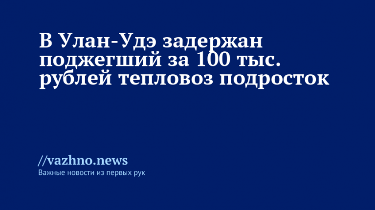 В Республике Бурятия оперативно задержали 17-летнего подростка из Забайкальского края, который устроил поджог тепловоза на станции Улан-Удэ. Об этом 30 июля заявила пресс-служба регионального МВД.