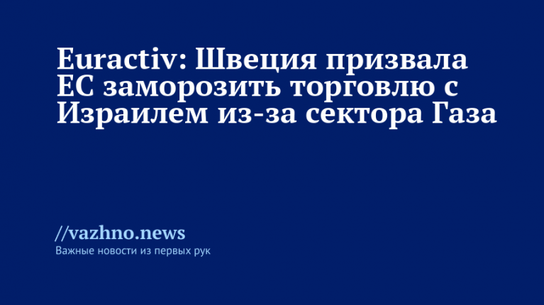 «Правительство Швеции настаивает, чтобы ЕС приостановил действие торгового соглашения с Израилем, чтобы заставить страну открыть доступ для доставки гуманитарной помощи в сектор Газа», — говорится в статье.