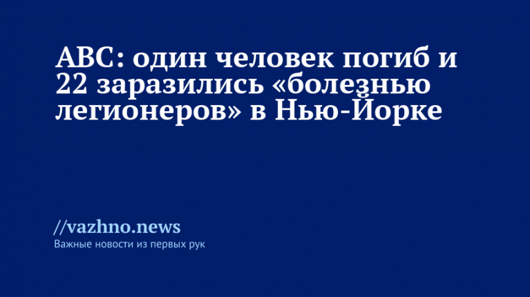 В Нью-Йорке зарегистрирована вспышка легионеллеза: один человек скончался, а не менее 22 жителей города заразились «болезнью легионеров». Об этом 31 июля сообщил телеканал ABC, ссылаясь на департамент здравоохранения Нью-Йорка.