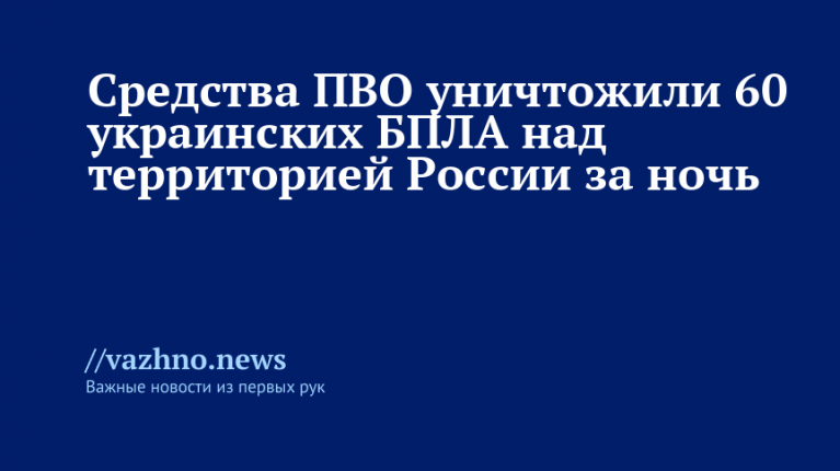 ПВО России сбили 60 украинских дронов за одну ночь над территорией РФ