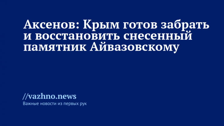 Крым выразил готовность принять и восстановить памятник русскому художнику Ивану Айвазовскому, который был демонтирован в Карабахе. Об этом 1 августа сообщил глава республики Сергей Аксенов.