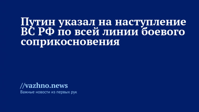 «Наши войска приступили к наступлению по всей линии боевого соприкосновения. Наступление ведется во всех направлениях — в приграничной зоне, на территории Донецкой и Луганской народных республик, а также в Запорожье и Херсоне. На всех фронтах одновременно», — рассказал глава государства.