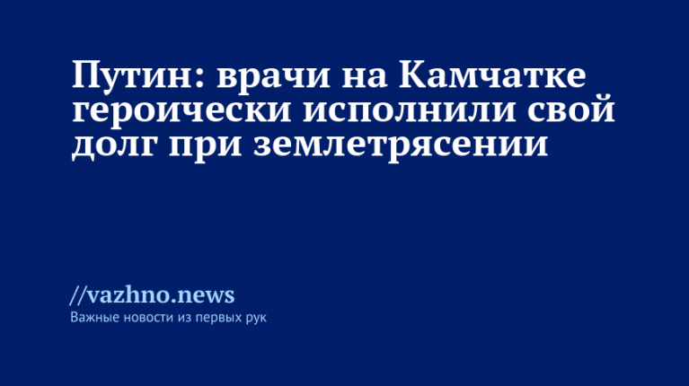 Врачи Камчатского края проявили мужество и профессионализм, выполняя свои обязанности во время землетрясения. Об этом 1 августа заявил президент РФ Владимир Путин.