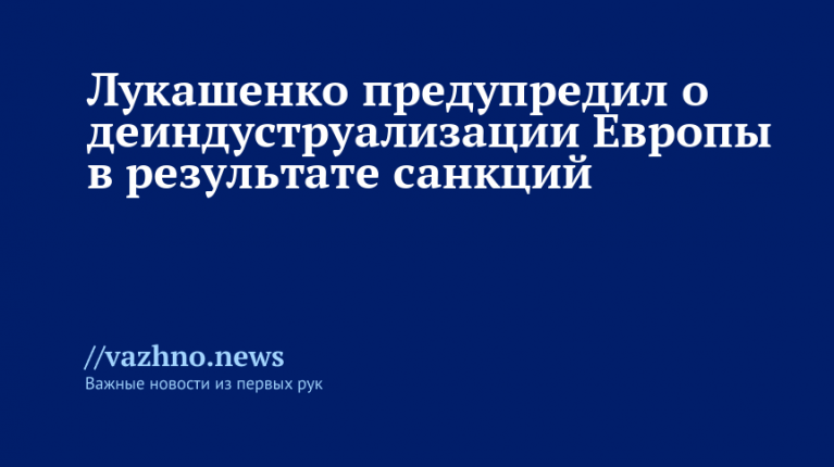 Лукашенко предупредил о деиндустриализации Европы из-за санкций