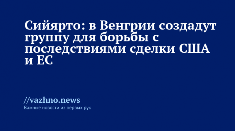 В Венгрии планируют сформировать рабочую группу, в состав которой войдут крупные иностранные и национальные компании, действующие в стране, с целью противодействия экономическим последствиям пошлинной сделки, ранее подписанной между Евросоюзом (ЕС) и США. Об этом 1 августа сообщил министр иностранных дел Венгрии Петер Сийярто.