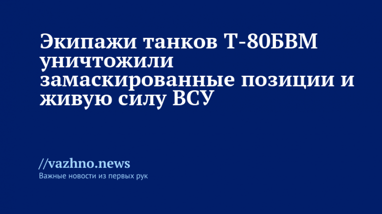 Экипажи танков Т-80БВМ из группировки войск «Север» при выполнении огневых задач уничтожили выявленные замаскированные позиции и живую силу Вооруженных сил Украины (ВСУ) в Сумской области, где проходит специальная военная операция (СВО). Об этом 2 августа сообщили в Министерстве обороны РФ.