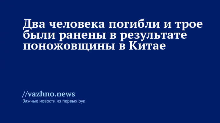 «На улице Цайцзычи в городе Лэйян провинции Хунань произошло нападение с ножом. <...> В результате инцидента погибли два человека и трое получили ранения», — пишет издание.