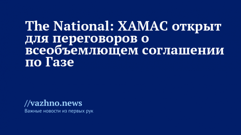 Источники The National передали, что ХАМАС рассматривает достижение всеобъемлющего соглашения как ключевой шаг для обсуждения долгосрочных требований по выводу израильских войск из Газы и прекращению войны.