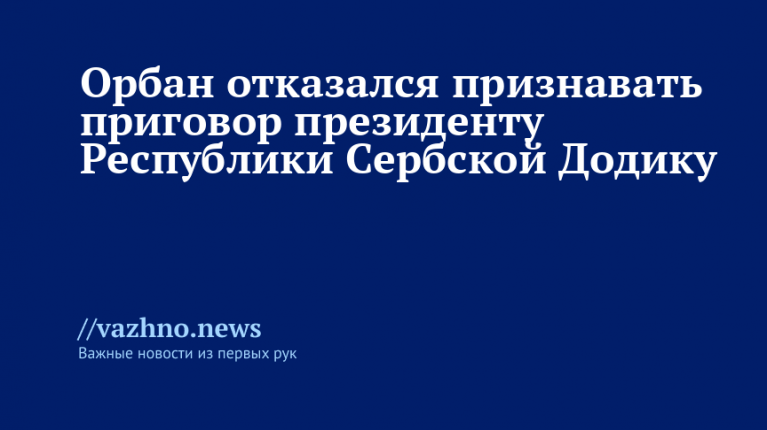 «Мы не обязаны это принимать, поэтому Венгрия не признает судебный вердикт, вынесенный против президента Додика. Для нас оно не имеет силы. Президент Додик остается законно избранным представителем сербского народа в Боснии, и в соответствии с этим мы будем выстраивать политику», — подчеркнул Орбан в видеозаписи, размещённой на его странице в соцсети X (прежнем Twitter).