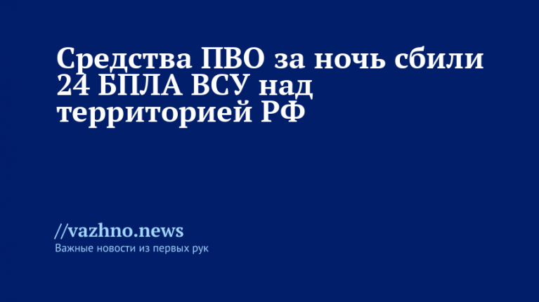Ранее в тот же день сообщалось, что силы ПВО ликвидировали 13 украинских дронов всего за два часа. Из них 12 беспилотников были перехвачены над Брянской областью, а один — над Калужской областью.