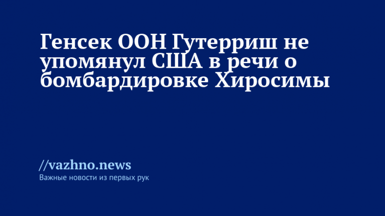 6 августа генеральный секретарь ООН Антониу Гутерриш в своей речи, приуроченной к 80-й годовщине ядерных атак на японские города Хиросима и Нагасаки, не упомянул США как страну, сбросившую атомную бомбу на эти города.