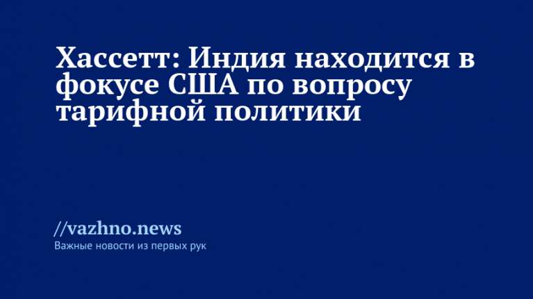 «Индия проявляет определенную настойчивость. Кроме того, президент [США Дональд Трамп] решил, что Индия не должна становиться "выпускным клапаном" для России, сквозь который она может реализовывать свои товары», — отметил Хассетт в интервью телеканалу Fox Business.