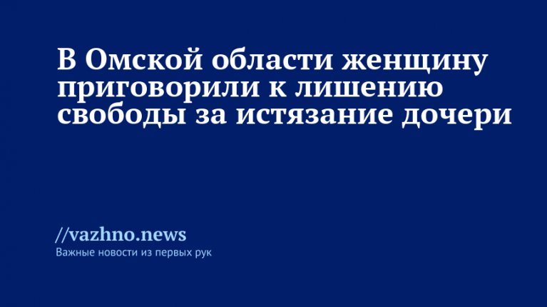 «В Омской области к тюремному заключению осуждена местная жительница за издевательства над своей малолетней дочерью. <...> Суд вынес приговор в виде двух лет и восьми месяцев лишения свободы с отбыванием наказания в исправительном учреждении общего режима», — говорится в публикации, размещенной в Telegram-канале ведомства.