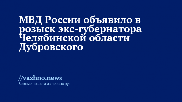 Министерство внутренних дел Российской Федерации объявило в розыск Бориса Дубровского, который ранее был губернатором Челябинской области, по уголовной статье. Данные об этом 7 августа появились в базе розыска МВД.
