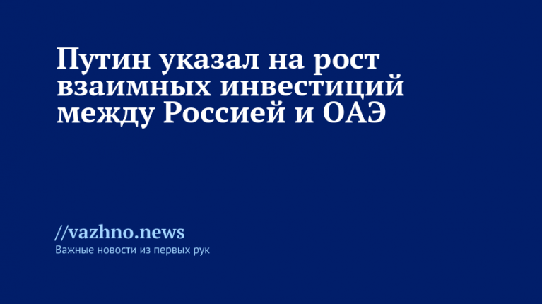 Путин отметил увеличение инвестиций между Россией и ОАЭ