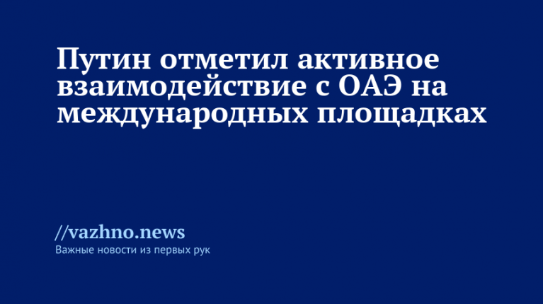 Россия и Объединенные Арабские Эмираты (ОАЭ) активно взаимодействуют на международной арене. Президент РФ Владимир Путин сообщил об этом 7 августа в ходе беседы с президентом ОАЭ Мухаммедом бен Заидом Аль Нахайяном.