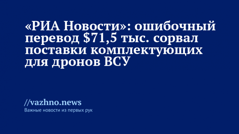 Случайный банковский перевод почти трех миллионов гривен (около $71,5 тыс.), повлиял на поставки дронов Вооруженным силам Украины (ВСУ) в Сумскую область и привел к расследованию по делу о мошенничестве, о чем 7 августа стало известно «РИА Новости» на основе украинских судебных документов.