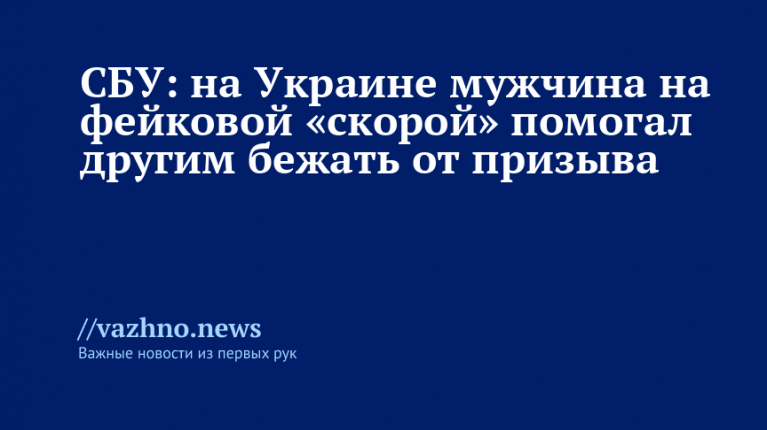 Житель Киева скрывал свой микроавтобус под видом машины скорой помощи с целью содействия гражданам Украины в бегстве от мобилизации за границу. Об этом 7 августа сообщили представители Службы безопасности Украины (СБУ).