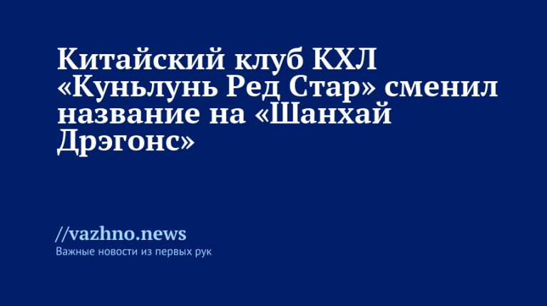 Китайская хоккейная команда Континентальной хоккейной лиги «Куньлунь Ред Стар» объявила о смене своего названия на «Шанхай Дрэгонс». Об этом было сообщено 7 августа в официальном заявлении пресс-службы клуба.