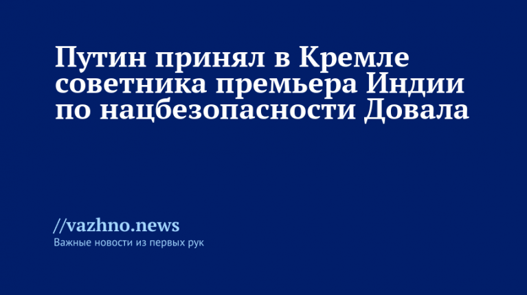 Президент России Владимир Путин принял в Кремле советника индийского премьер-министра Нарендры Моди по национальной безопасности Аджита Довала. Об этом в четверг, 7 августа, сообщила пресс-служба Кремля.