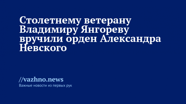 Владимиру Янгореву, ветерану Великой Отечественной войны, которому исполнилось 100 лет, на его день рождения 27 июня вручили орден Александра Невского в Московском высшем общевойсковом командном училище, куда он поступил еще в 1949 году.