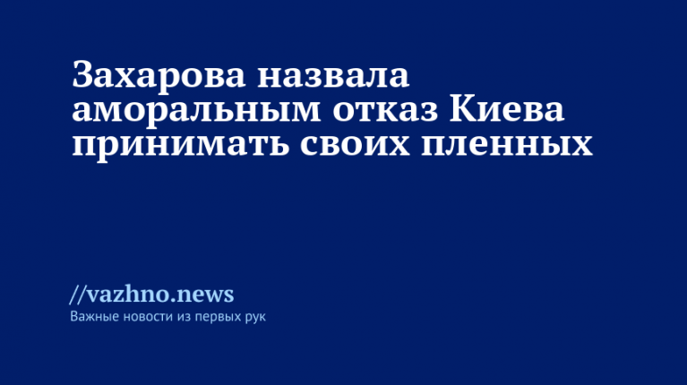 «Киевский режим до сих пор не принимает тысячу пленных солдат ВСУ, из-за чего затруднился второй этап обмена военнопленными, и третий этап так и не стартовал», — говорится в заявлении Захаровой на сайте Министерства иностранных дел РФ.