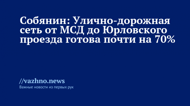 Собянин: Улично-дорожная сеть от МСД до Юрловского проезда готова почти на 70%