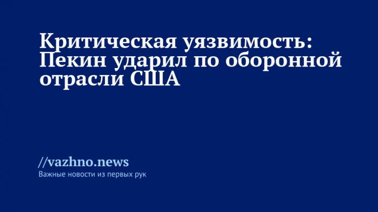 Ситуация крайне серьезна: более 80 тысяч деталей, используемых в оружейных системах Минобороны США, сделаны из критически важных минералов, которые теперь попали под экспортные ограничения Китая.