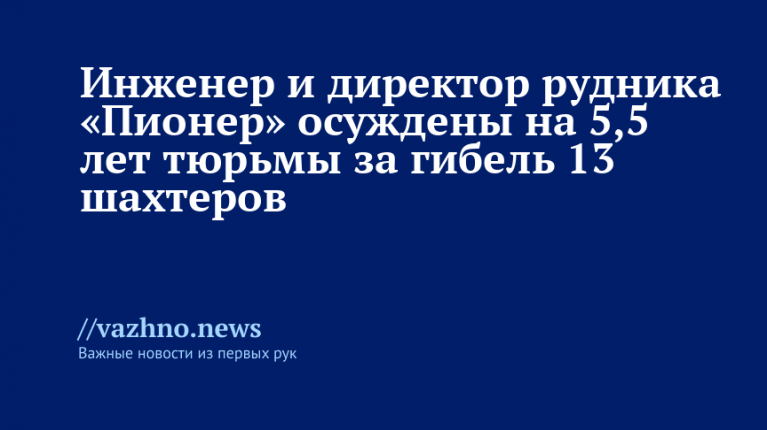 В Амурской области управляющий директор рудника «Пионер» Алексей Бирюков и главный инженер Дмитрий Черников были приговорены к лишению свободы сроком на 5,5 лет из-за смерти 13 работников шахты. Эта информация появилась 8 августа в Telegram-канале пресс-службы судов Амурской области.