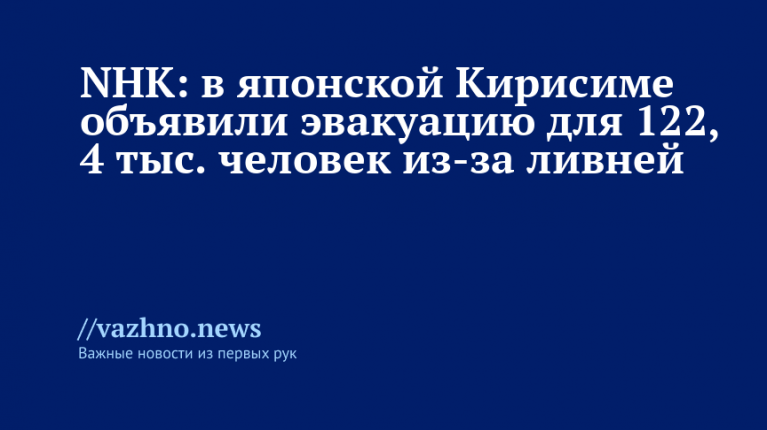 «После введения особого предупреждения о сильном дожде в городе Кирисима префектуры Кагосима была запущена «экстренная проверка безопасности» для 63,1 тысячи домохозяйств и 122,4 тысячи человек на всей территории города», — говорится в сообщении.