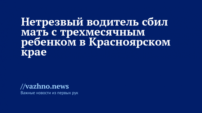 В Красноярском крае произошло ДТП с участием нетрезвого водителя, который сбил женщину с трехмесячным ребенком. Об этом стало известно 8 августа из пресс-релиза регионального управления МВД РФ.