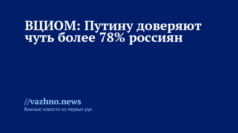 Президент Российской Федерации Владимир Путин пользуется доверием у 78,4% населения. Такие данные содержатся в обновленном рейтинге главы государства, который был обнародован 8 августа на сайте Всероссийского центра изучения общественного мнения (ВЦИОМ).