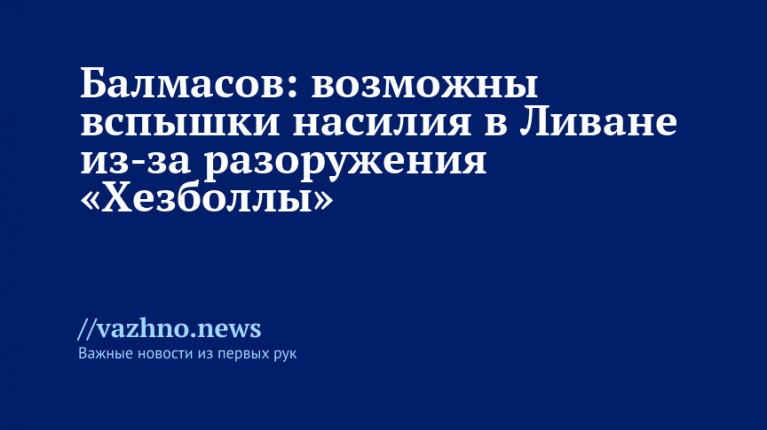 Балмасов: в Ливане возможны вспышки насилия из-за разоружения «Хезболлы»