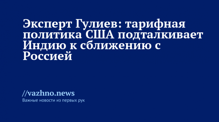 «Действия США побуждают Индию пересмотреть свою внешнеэкономическую стратегию. Мы наблюдаем признаки укрепления связей с Китаем и Россией, в первую очередь в рамках многосторонних форматов БРИКС. Это открывает возможность для формирования альтернативных финансовых расчетов, обходящих доллар США, расширению инвестиционного партнёрства и развитию инфраструктуры для поставок нефти и газа, не зависящей от западных стран», — подчеркнул Гулиев.