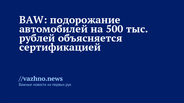 В компании BAW объяснили повышение стоимости автомобилей на 500 тыс. рублей из-за сертификации. Об этом 8 августа сообщило агентство «Автостат», ссылаясь на российское представительство марки.